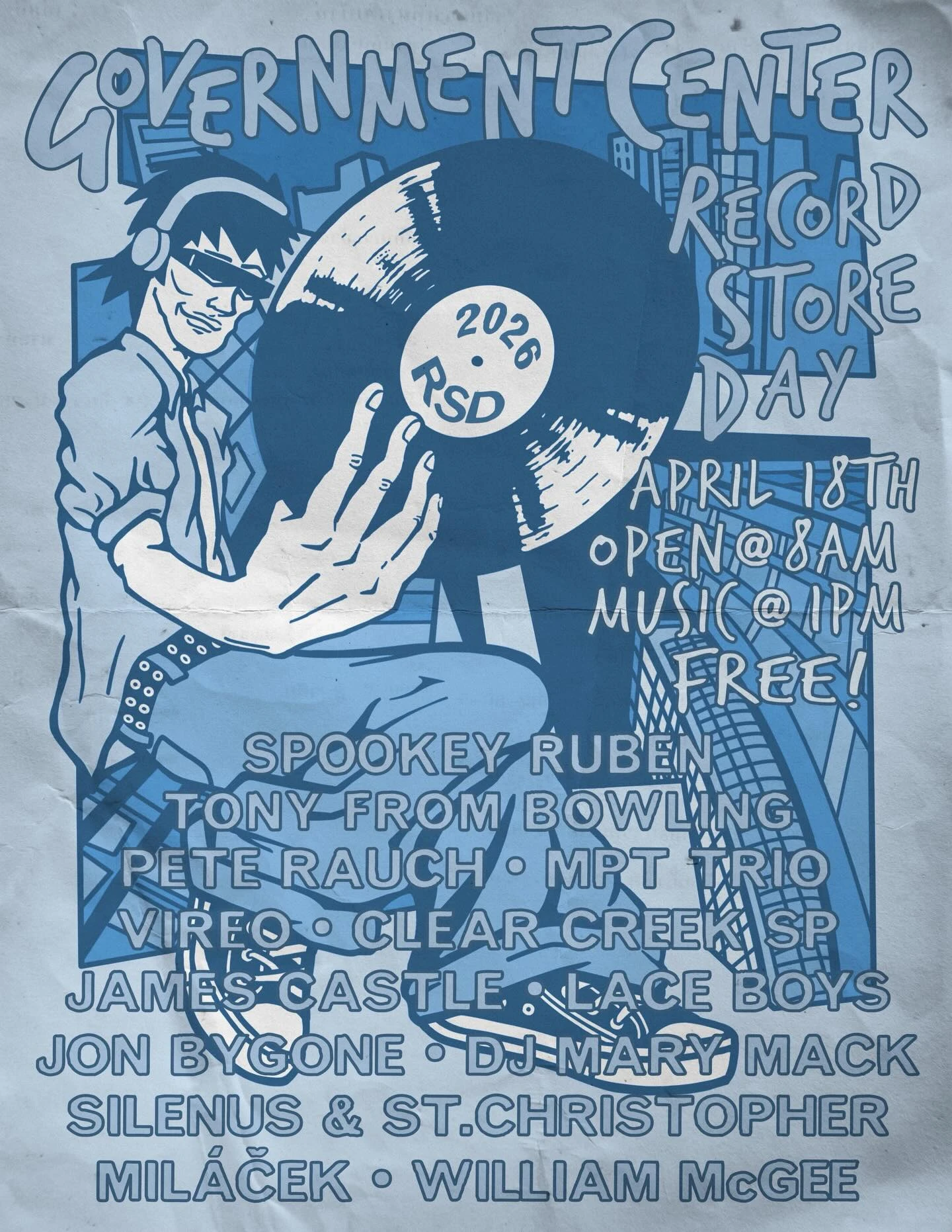 Free all-day Record Store Day celebration at Government Center in Pittsburgh featuring live music starting at 1PM with over ten performers.