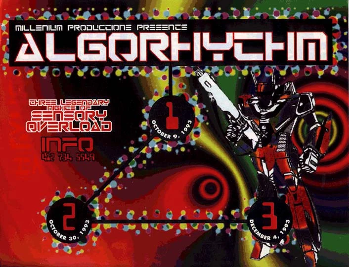 Algorhythm 1-2-3 Three legendary Pittsburgh raves across Fall 1993 by Millenium Productions. Rave Saturday, October 9, 1993 at 10:00 PM