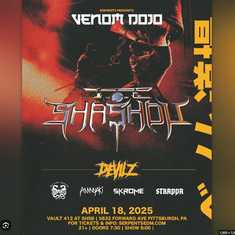 Serpents presents Venom Dojo featuring Shashou, Devilz, and more at Vault 412 in Pittsburgh.