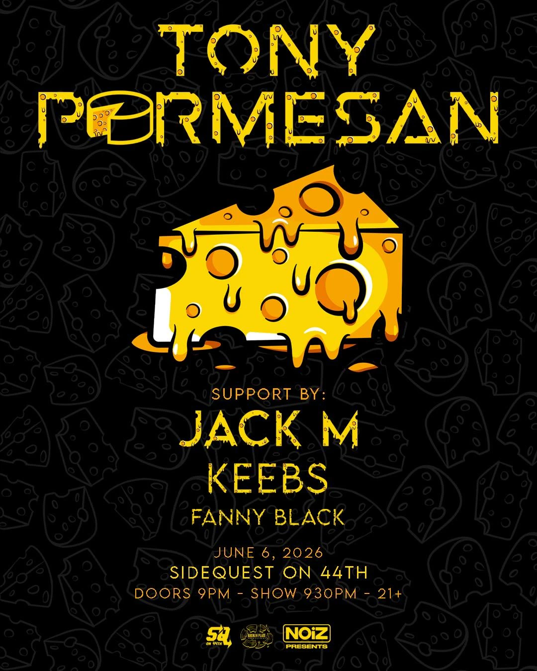 Tony Parmesan headlines a 21+ night at Sidequest on 44th with support from Jack M, Keebs, and Fanny Black.