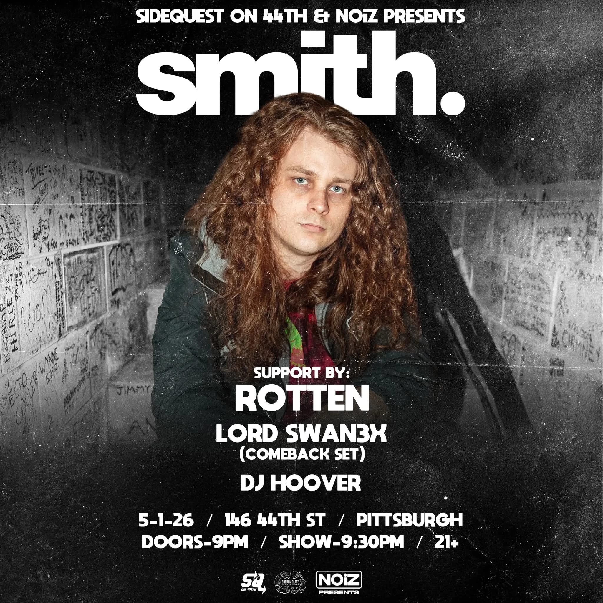 Headlining set from smith. with support by Rotten, Lord Swan3x (comeback set), and DJ Hoover at Sidequest on 44th in Pittsburgh.