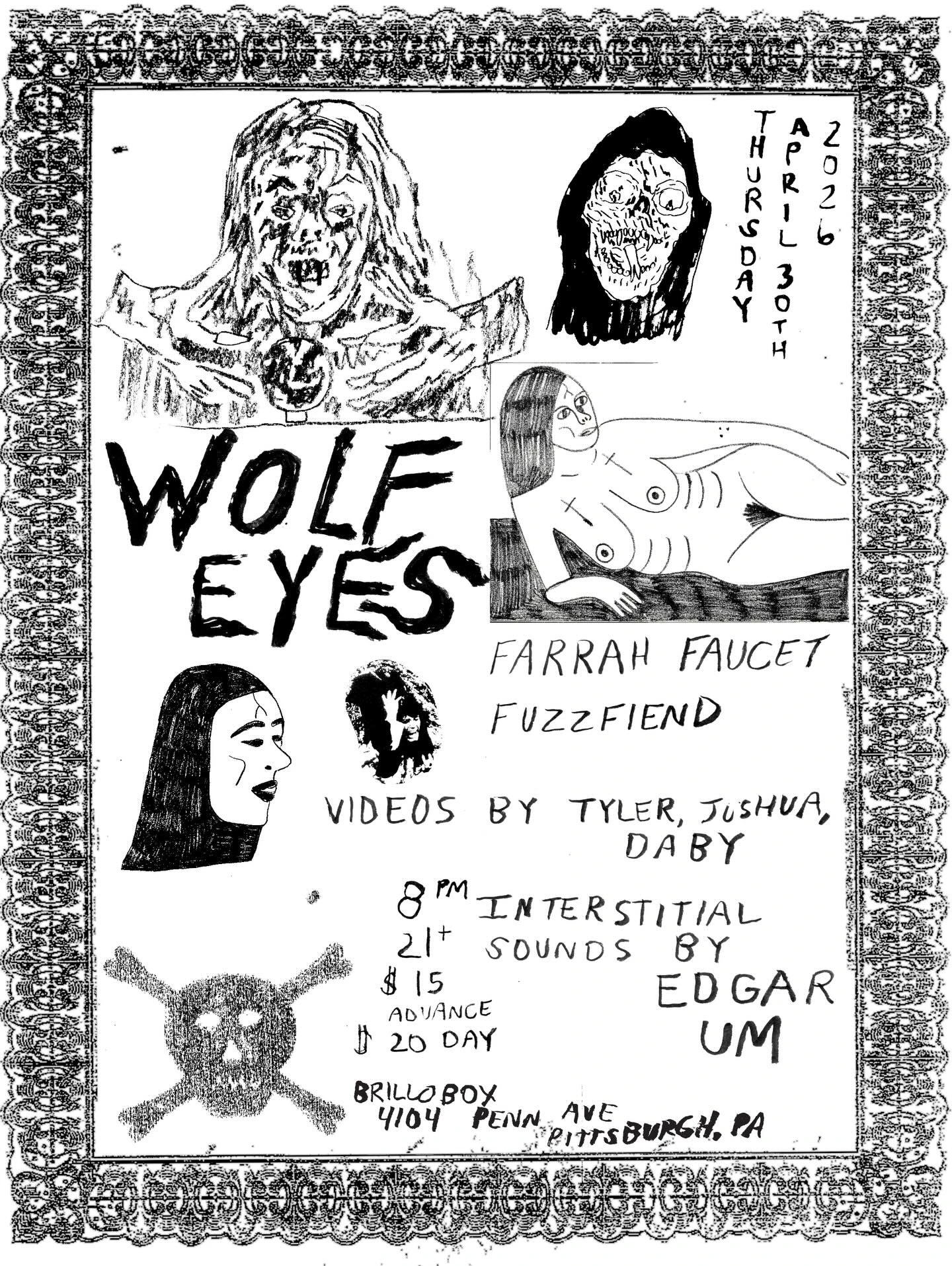 Wolf Eyes returns to Pittsburgh with Farrah Faucet & Fuzzfiend at Brillobox.
